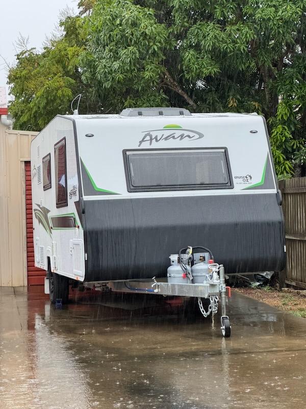 7:00 The weather forecast for this weekend includes multiple riverine flooding and severe weather warnings for most of SE Qld, but assuming we aren't flooded in, it's handover day. The Prado is all packed with the bits and pieces for installation (Purpleline Quattro Mover, Sirocco Fan) as well as the tow mirrors. We plan to set off early if the forecast rain happens so as to not get flooded in at home. After the handover, we're driving up to Maryborough to Mum & Dad's as they have a nice concrete slab to put the van on and install the mover. The mover is kinda essential if we want to turn the van around at home, as the front yard does not have enough room to turn it around while hitched up.