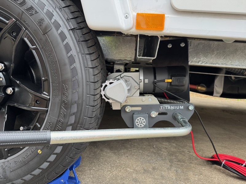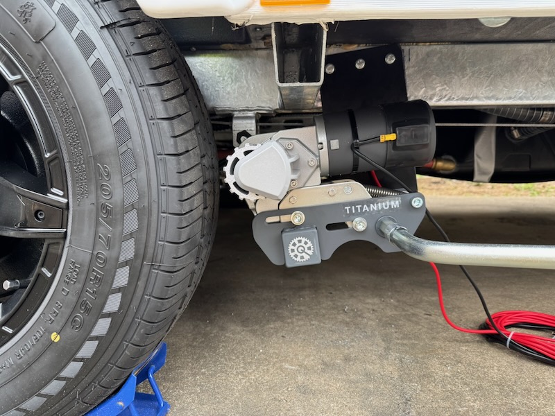 By now, breakfast was on the go, so we went back inside and discussed the day's plan of attack for the mover installation. After we'd eaten, I unpacked all the bits for the mover (a Purpleline Quattro Titanium caravan mover) and we re-watched the installation instructions video. It looked easy enough. About four hours later, we had the mechanical portion of the install done. The motors were mounted, cross-beams in place, and it could be engaged and disengaged from either side of the van.