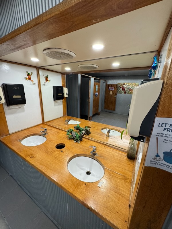 After that little side-quest, it was back to camp. We spent some time trying to work out where we were on the camp map, and also where the amenities were. On that latter point, I went for a wander and found the amenties not too far away. They are clean and have a frog motif (at least in the Men's).