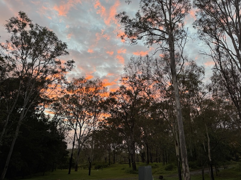 It rained overnight and in the morning we were greeted by the sounds of brush turkeys outside, and pinkish clouds in the sky,